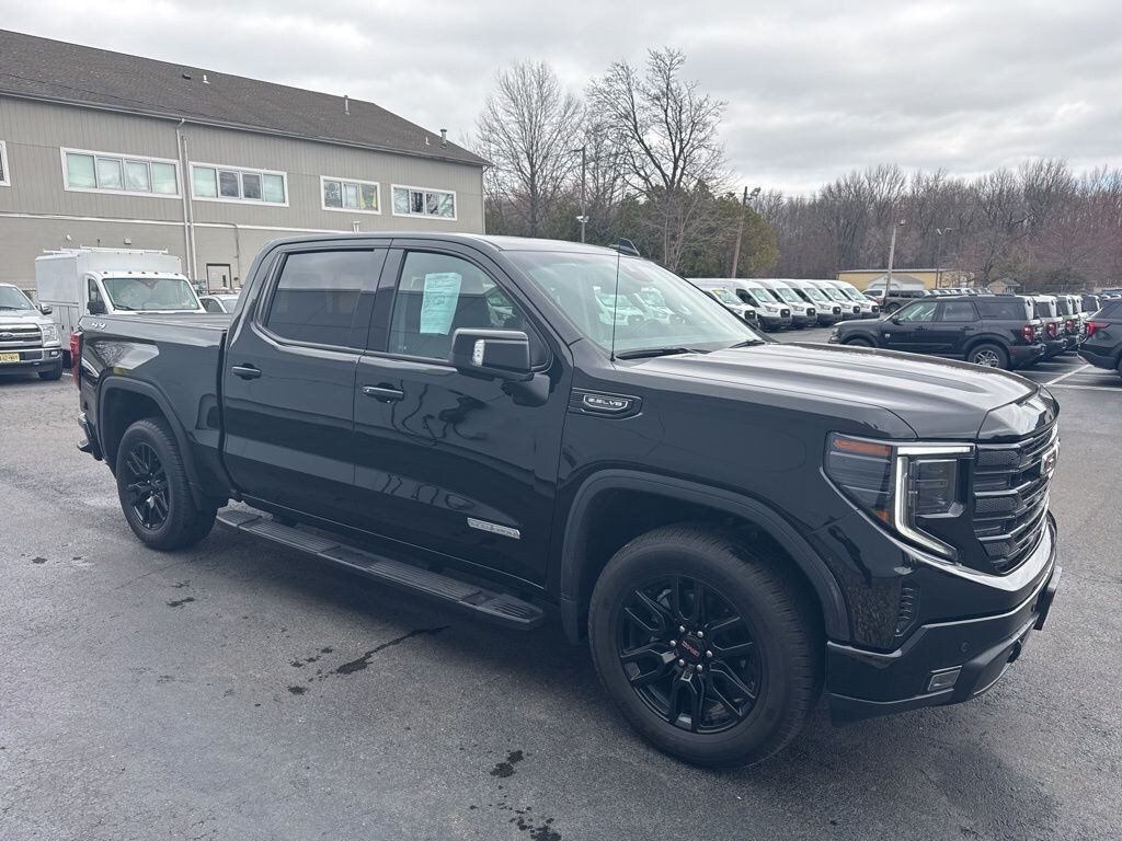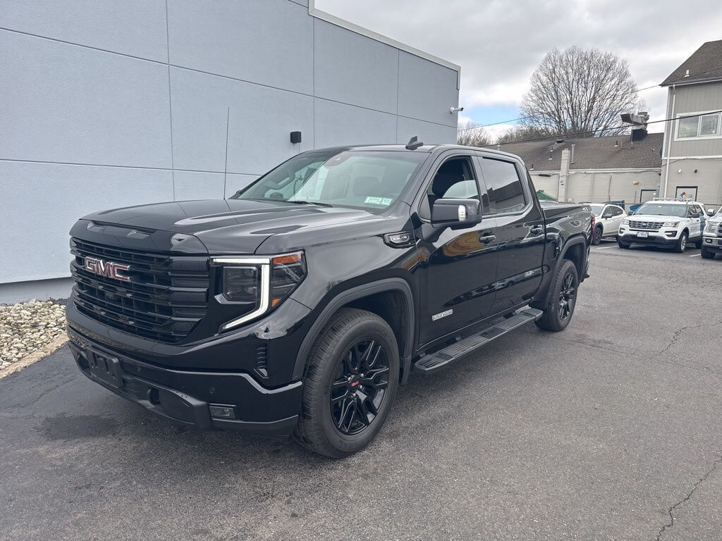 CARFAX One-Owner. Recent Arrival! Certified. Experience the perfect blend of power and sophistication with this 2024 GMC Sierra 1500 Elevation in striking Onyx Black. Powered by a 5.3L EcoTec3 V8 engine and a smooth 10-speed automatic transmission, this 4WD Crew Cab is built for both rugged performance and everyday refinement. The exterior commands attention with 20-inch high-gloss black aluminum wheels and 6-inch black assist steps, while the Elevation Premium Package elevates the cabin with leather-appointed front bucket seats, a power sunroof, and a Bose premium sound system. Stay connected through the massive 13.4-inch diagonal color touchscreen with Google built-in compatibility and drive with confidence thanks to HD Surround Vision and GMC Pro Safety features like Adaptive Cruise Control. Complete with a spray-on bedliner and a comprehensive trailering package, this Sierra is a professional-grade powerhouse ready for any task.